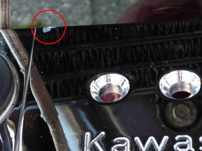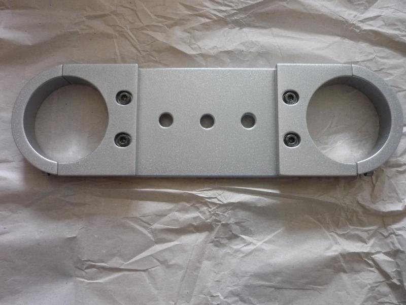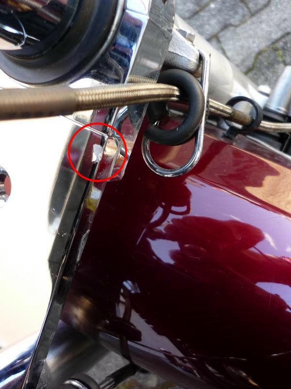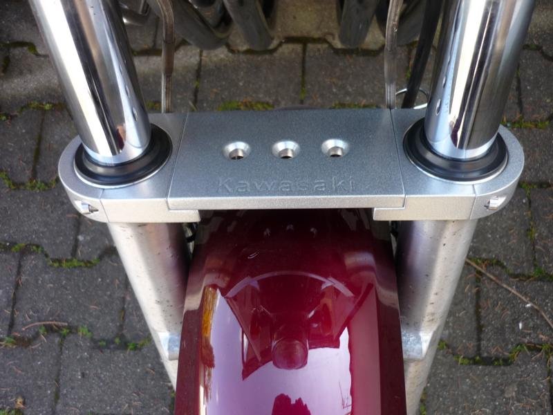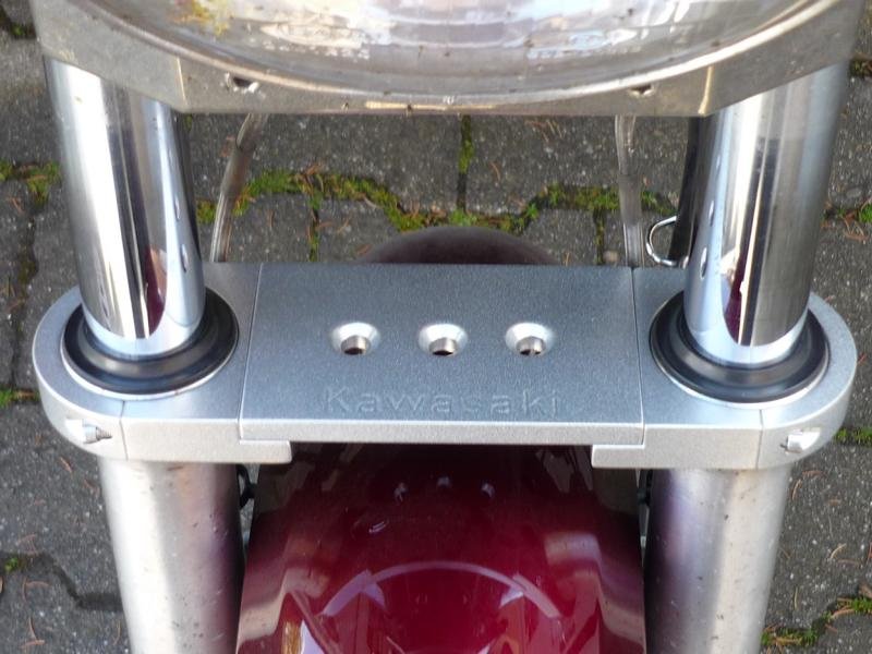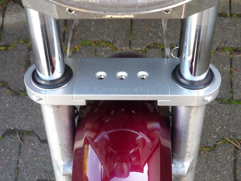 Beim putzen habe ich Mitte 2013 festgestellt daß der Chrom abgeplatzt ist.Man konnte ihn wie Klebestreifen abziehen.Im September zu Alutec zum neuverchromen geschickt und nach Monaten mit zerstörten Gewinden und miesem Chrom zurückbekommen. Danach das Geld zurückgefordert (und auch bekommen) Den Stabi selber repariert und bei Jacobi Color pulverbeschichten lassen.